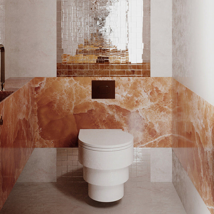 William WaldronEven the bathrooms received special treatment: In this house it’s not the dining room but the primary bath that has a custom-painted mural. “The bathroom was on the small side and didn’t have many windows—that’s where the concept of a mural came in,” explains Lauren. “The homeowners love nature and there are a lot of beautiful trees on the property, so we decided, let’s bring them inside.” The grisaille mural felt appropriately subtle for the bath, and an antique Indian rug softens the stone and ceramic tile.
