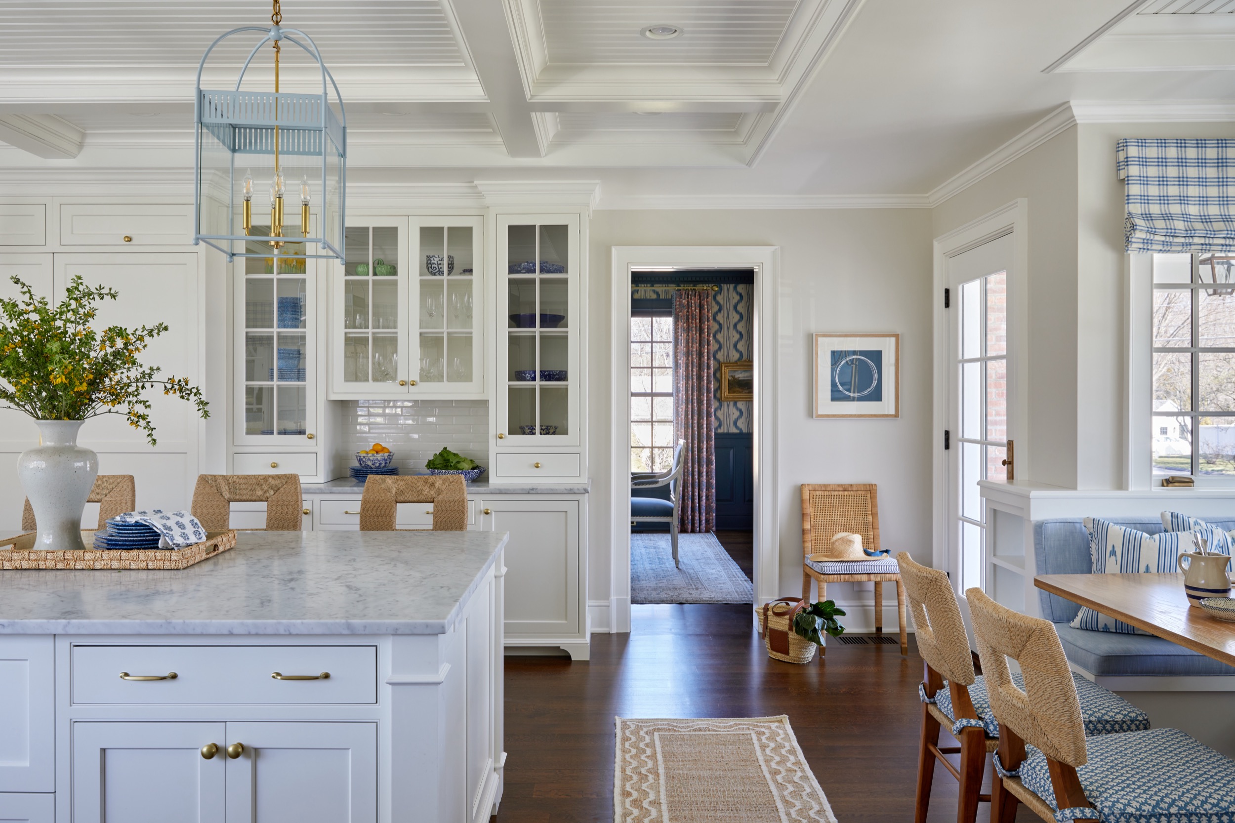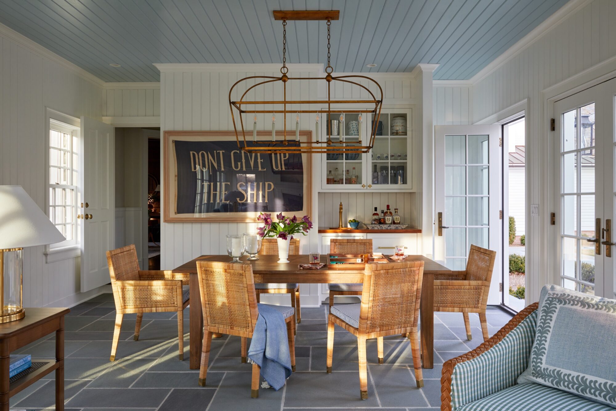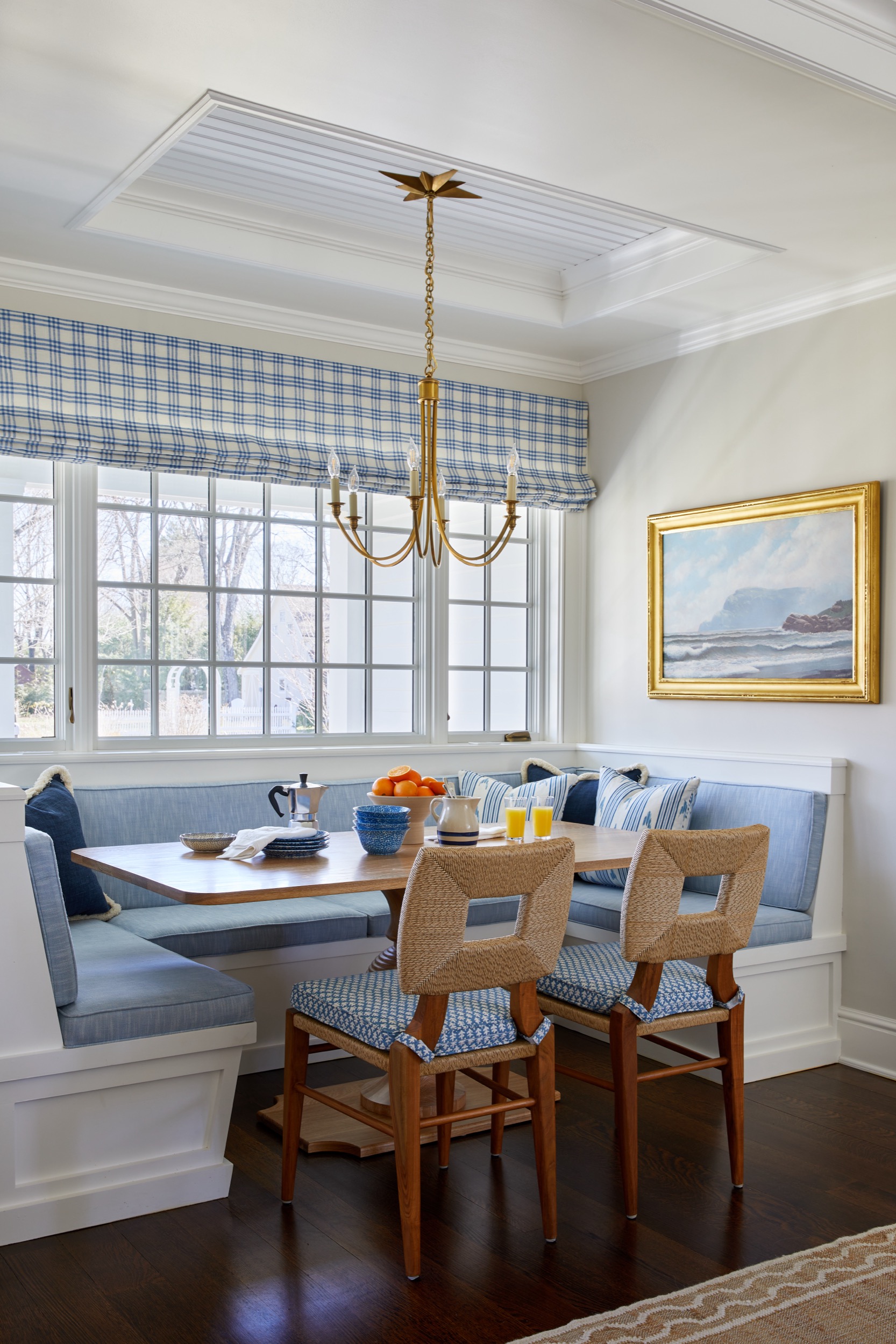 Kirsten FrancisAs for the client’s design directive, we pulled a lot of inspiration (and actual pieces of art and accents) from a collection of heirlooms that spoke to the family’s strong historical ties to the area and maritime culture. In concert with that, the client wanted to make sure it felt youthful, so mixing in color and pattern with tried-and-true classics like stripes, plaids, and rich leathers was key. Plus, we had to keep the two (now three) little children living there in mind when it came to durability! The husband and wife had some opposing wishes when it came to style—one more traditional and the other more colorful and playful—but we were able to bridge the gap and give them a mix that creates moments in the home they both love. The husband’s office and formal living room are an homage to old-world Ralph Lauren style, while the family room speaks more of the wife’s love of florals and bright colors. The dining room blends those looks to create a cheerful but timeless space that reflects them both.